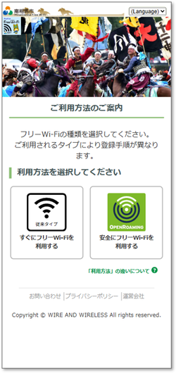 - OpenRoaming/SNSアカウント、メール認証方式、どちらもご利用いただけます。