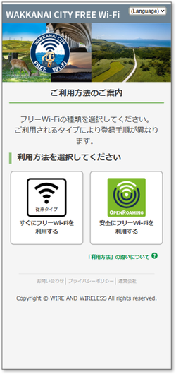 ※初回のみ、OpenRoaming対応のSSID「WAKKANAI_CITY_OpenRoaming」を選択し接続してください。